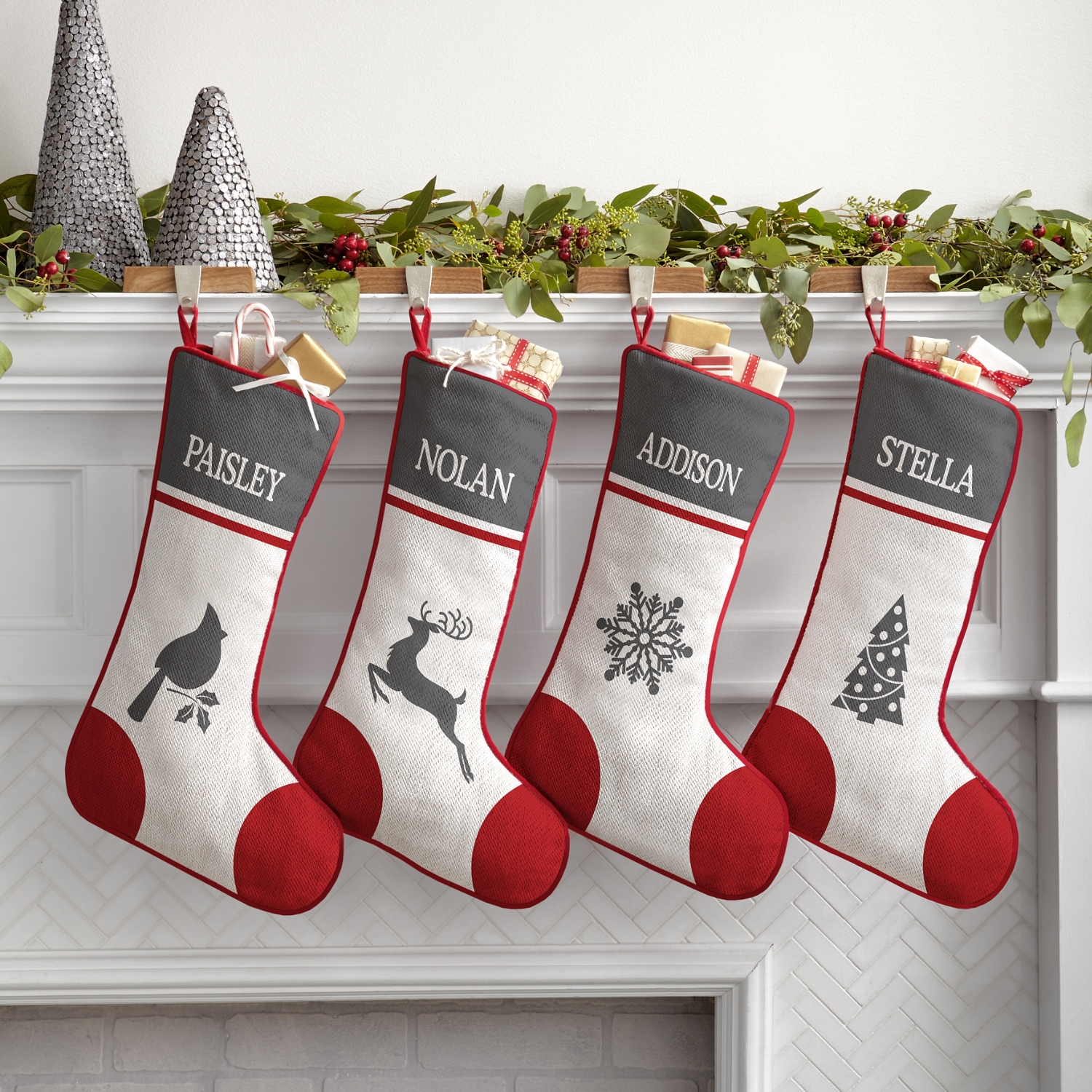 Bring a personal touch to your festive decor! Choose from an array of timeless winter designs to create a unique stocking for each family member. Add a name and watch as eyes sparkle with joy when they spot their custom keepsake adorning the mantel!
